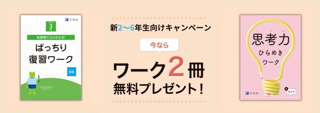 などのワーク教材がプレゼントされることもあります。